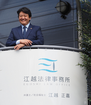 ○社会福祉士として高齢者在宅福祉、医療福祉の現場で勤務すること5年。その後、法科大学院へと進学し、資格取得を目指す。2008年12月、弁護士登録。2017年独立。生まれ故郷である佐賀にて、江越法律事務所を開設する。